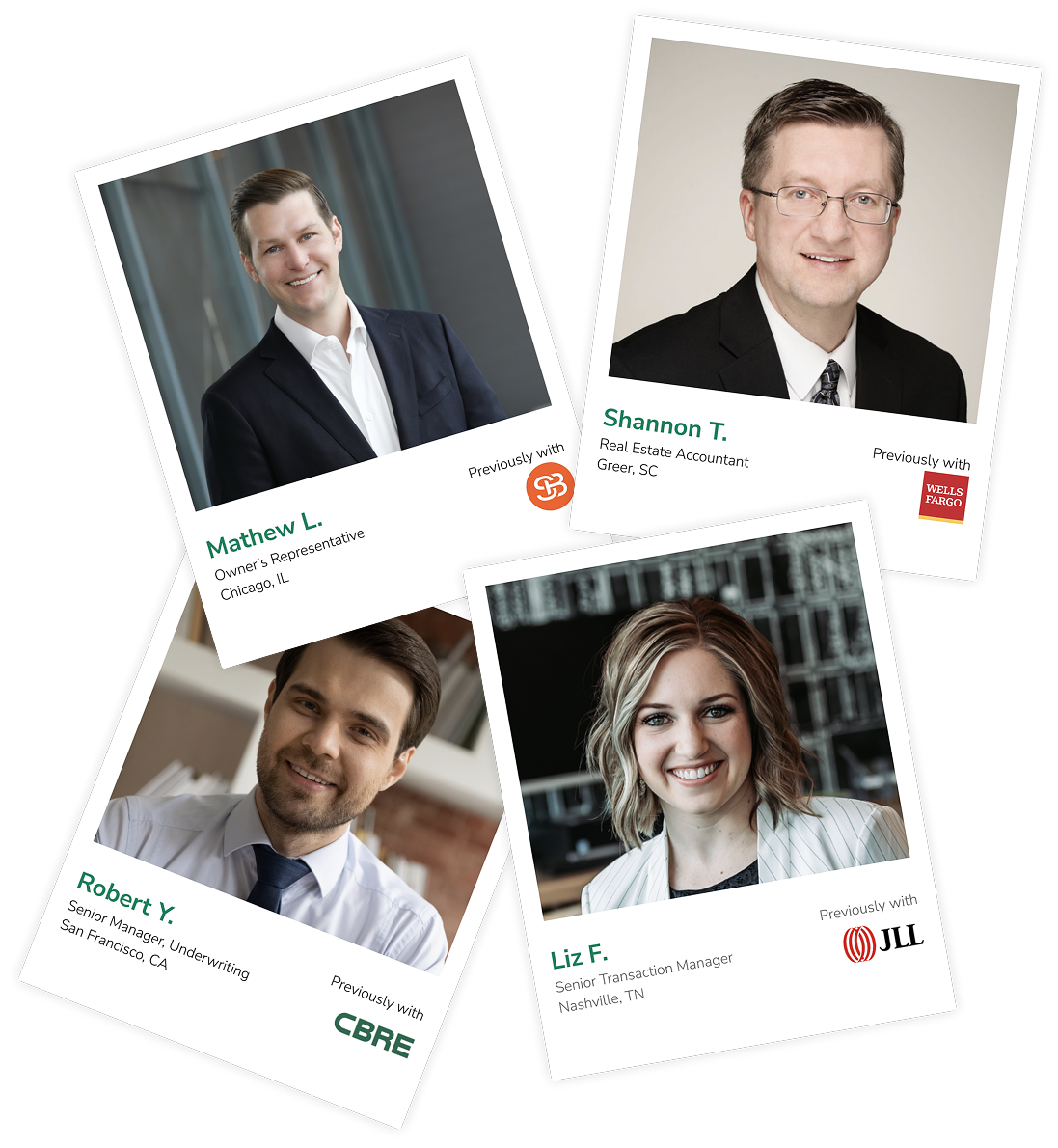 Our experts have an average of 10+ years of experience with leading commercial real estate firms, banks and investors.